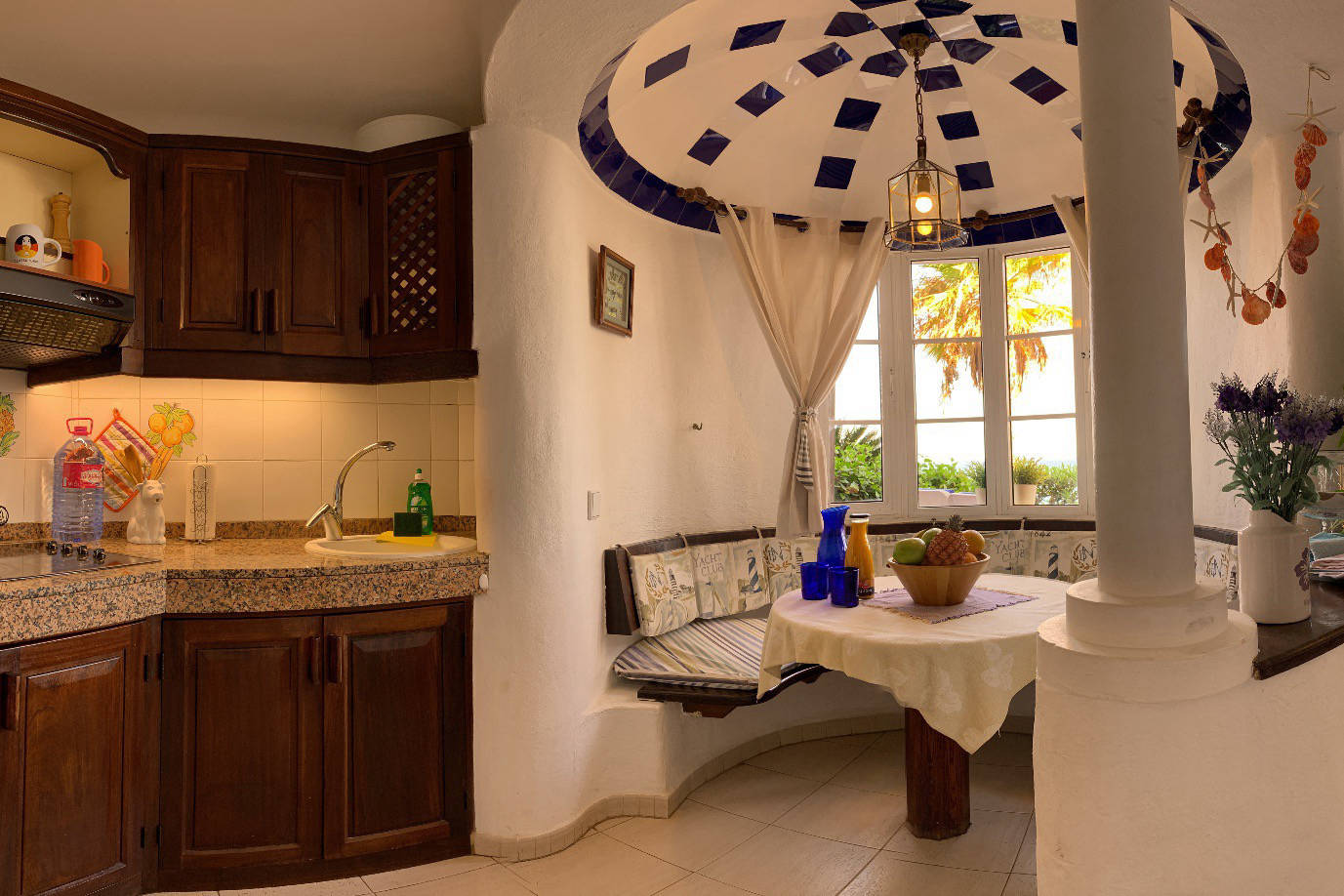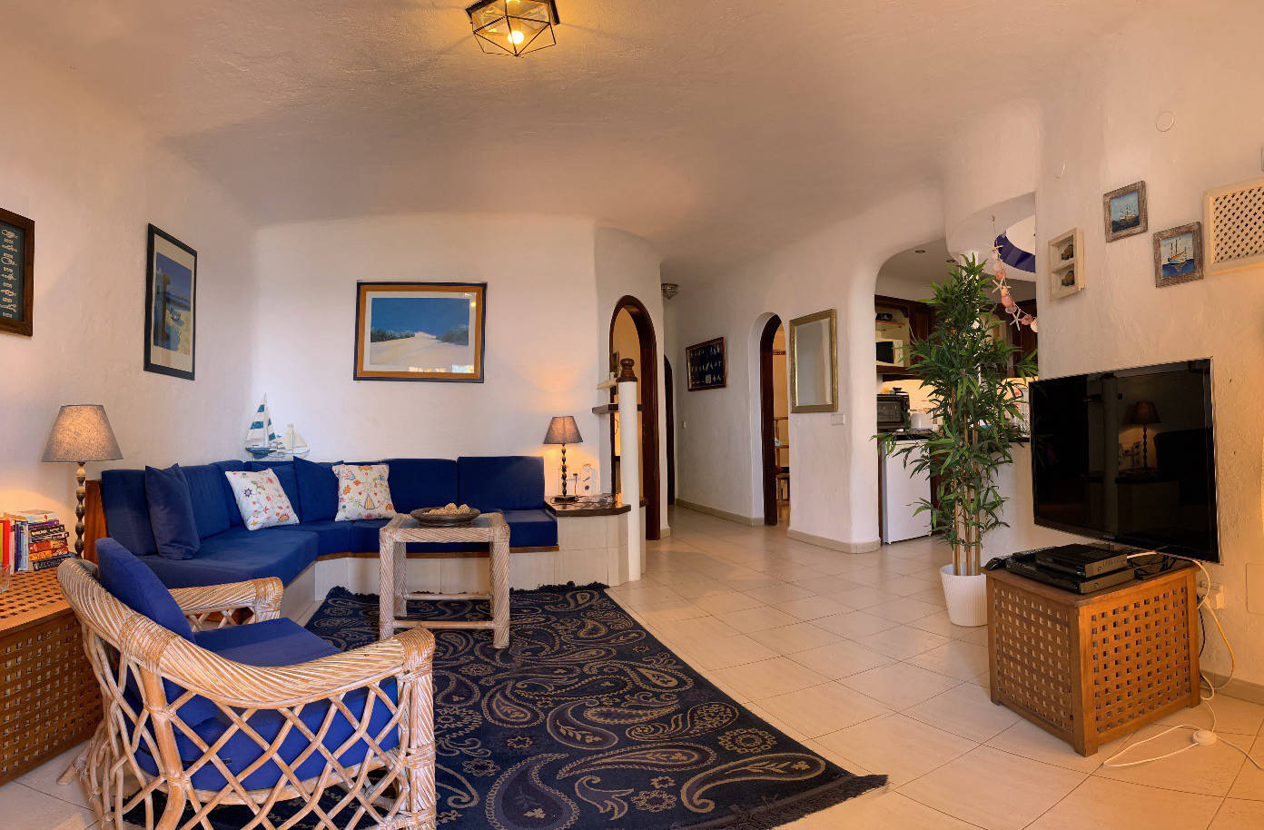 The EXCLUSIVE APARTMENT is situated directly on the sea front, in an exclusive apartment complex which offers total privacy with an excellent infrastructure. The combination of Spanish and Moroccan architecture will enchant you immediately. The spacious living area offers plenty of room for your family as well as your guests. The wonderful view from the living room overlooking the sea will put you in a relaxed mood immediately. In the fully equipped American style kitchen (which includes an CERAN-oven, hob, refrigerator, etc.) meals can be prepared at ease. Not only the living room but also the two ample en-suite bedrooms are exclusively furnished. Enjoy dining with a stunning sea view from the round table in a Spanish style oriel. The secluded balcony/terrace invites for unimpaired sun-bathing.